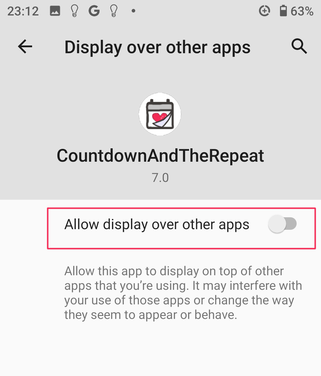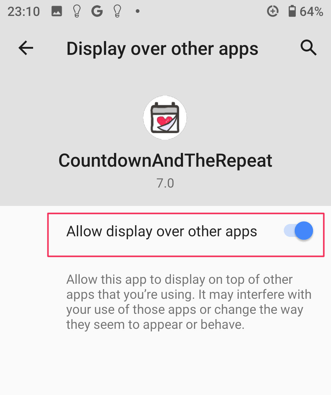 * For details on importance and priority, please refer to Android Developer Table 1. - When using sound, depending on the version of Android, "overlay" (display over other apps) permission is required.