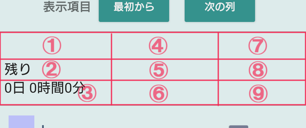 - 次 の 列:2行目、または3行目の項目を設定せずに次の列に設置位置を移動します。