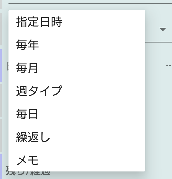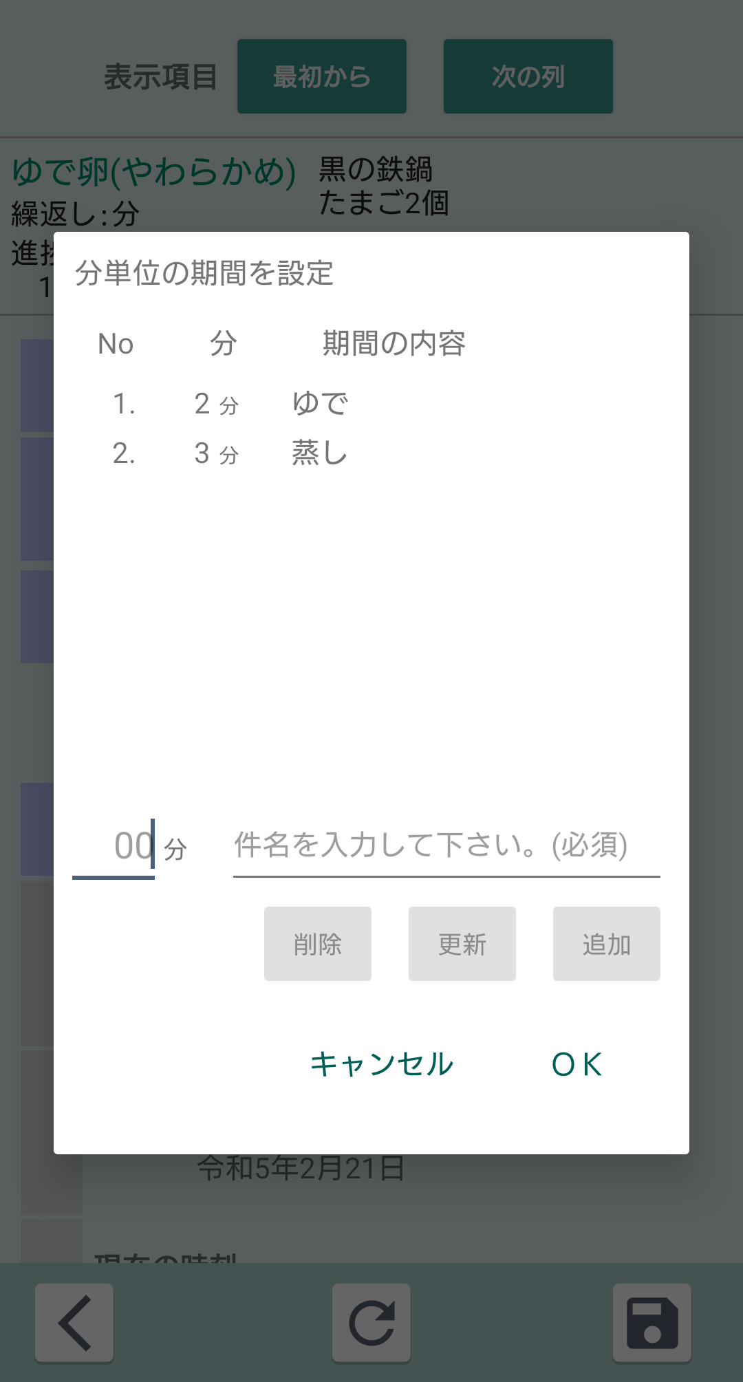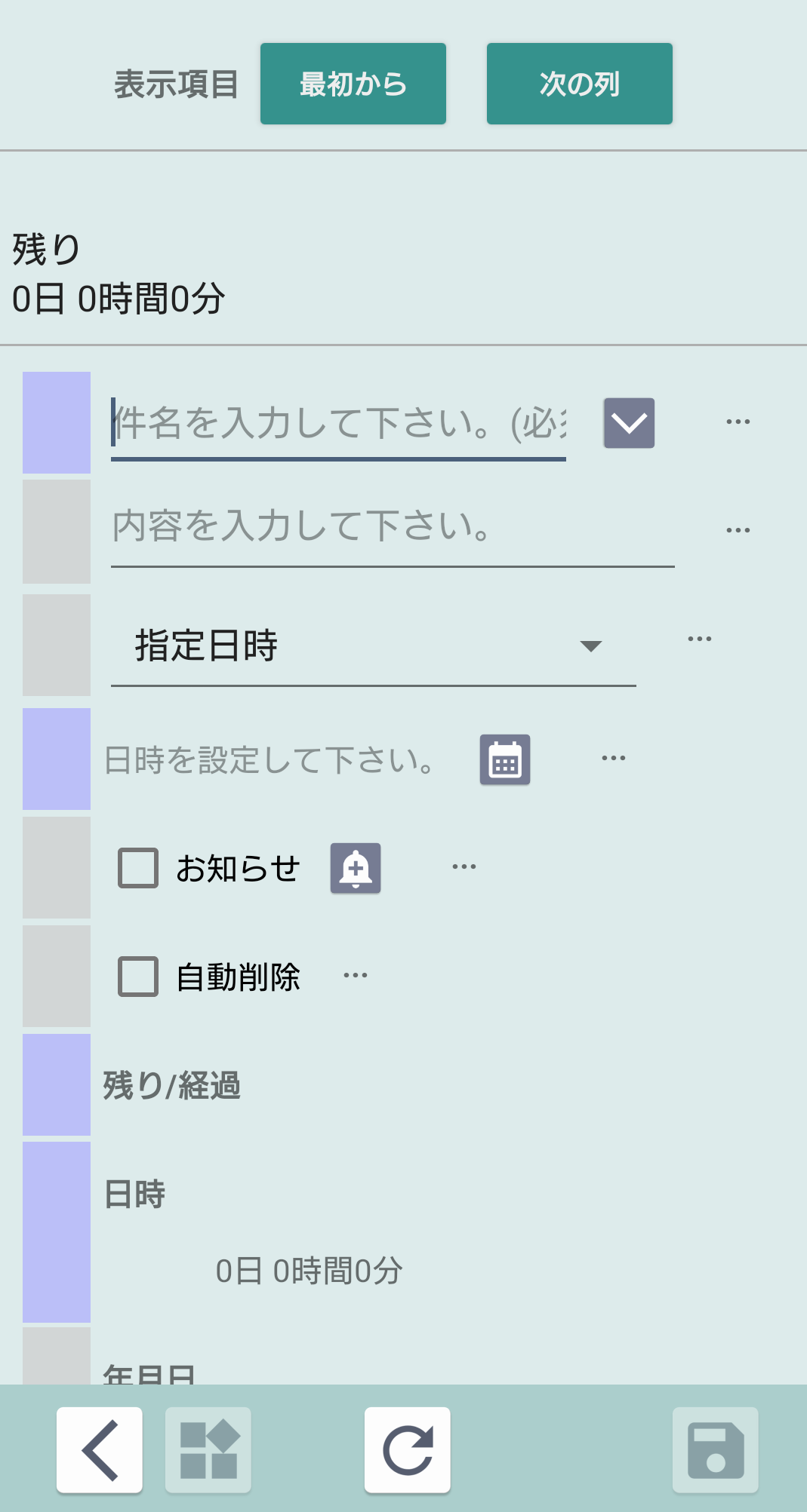 ※日単位の場合は、終了日になると停止し自動繰返はしません。 - 分単位:料理や、トレーニングなど分単位で管理したい場合等にご利用ください。