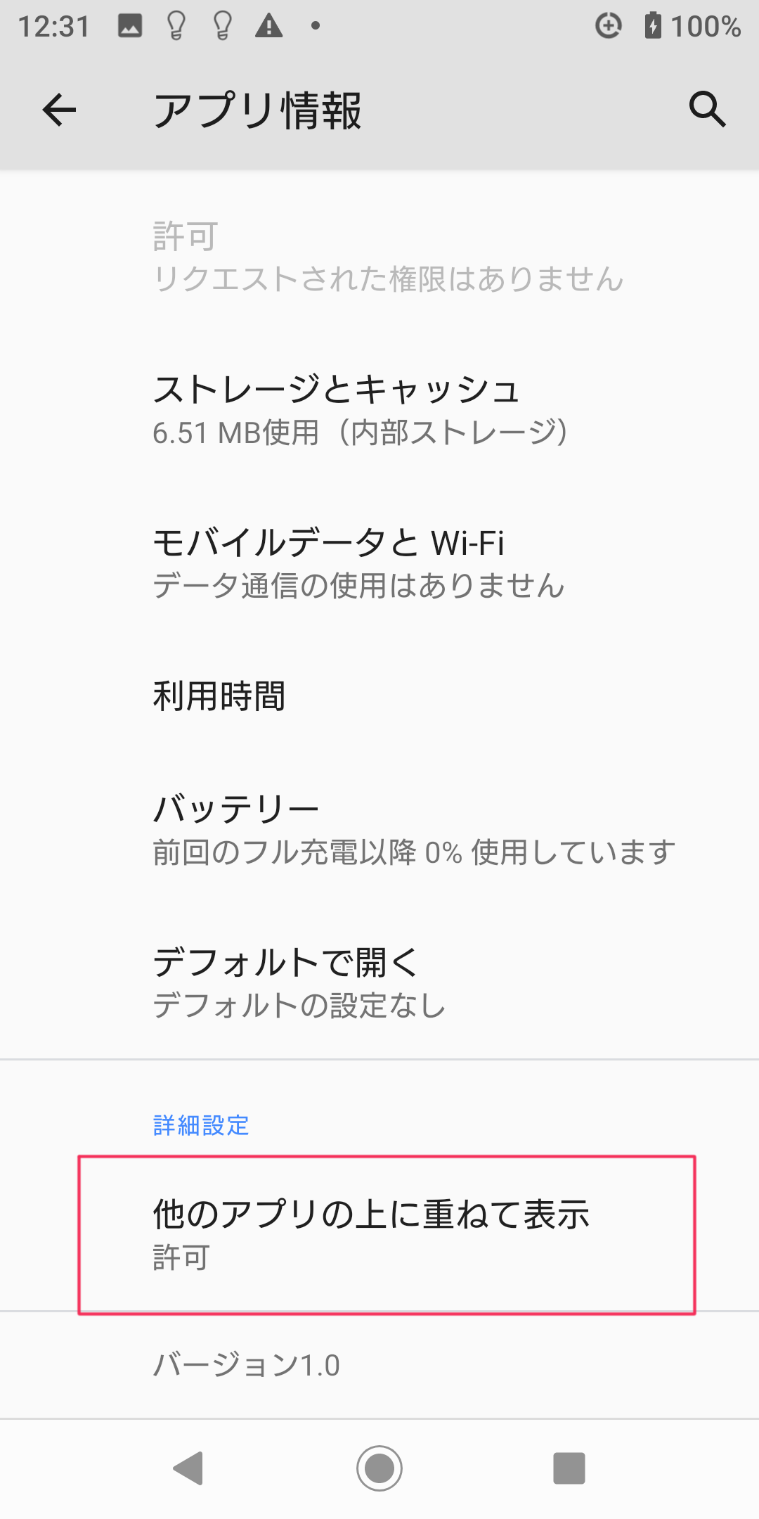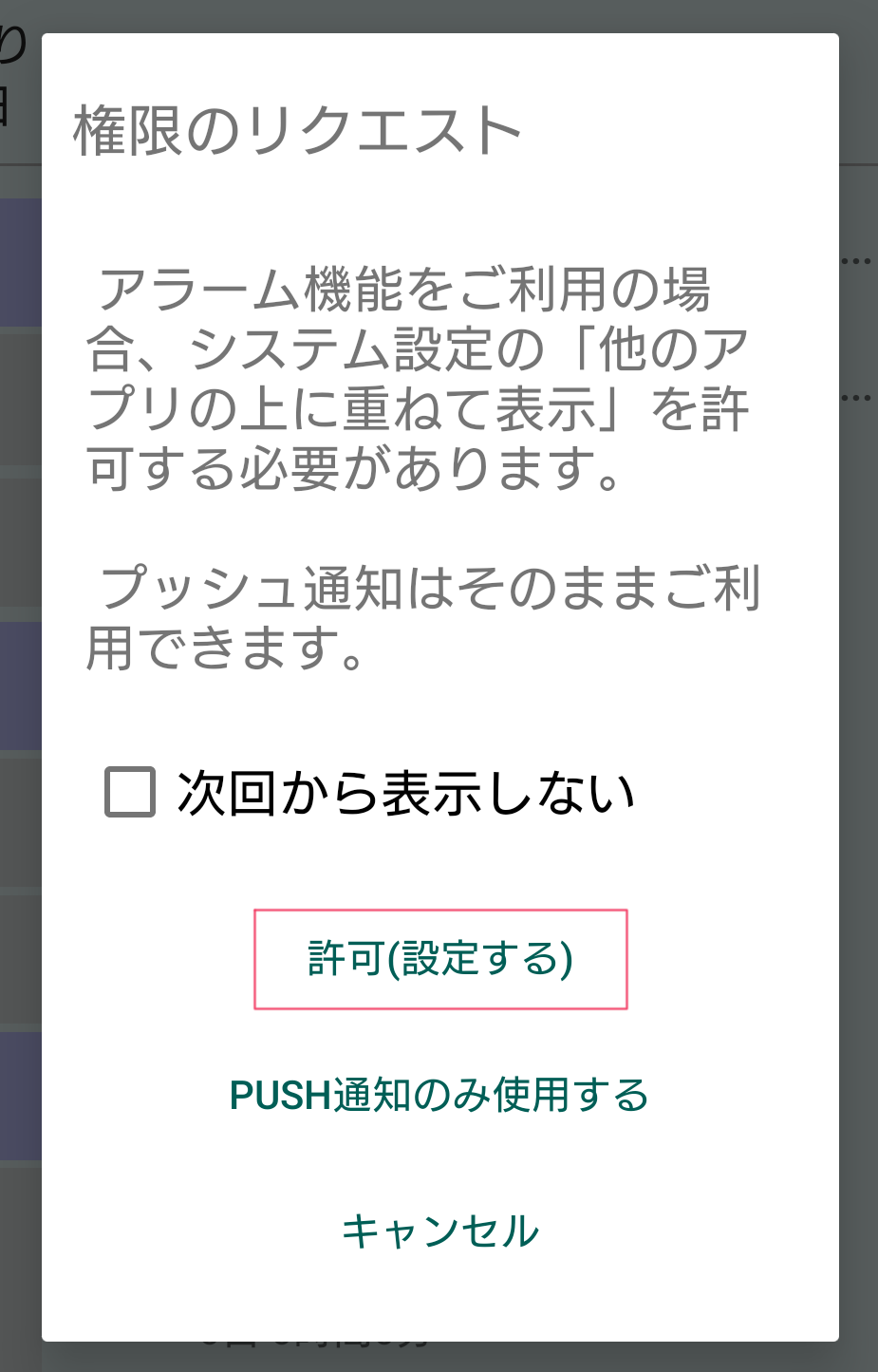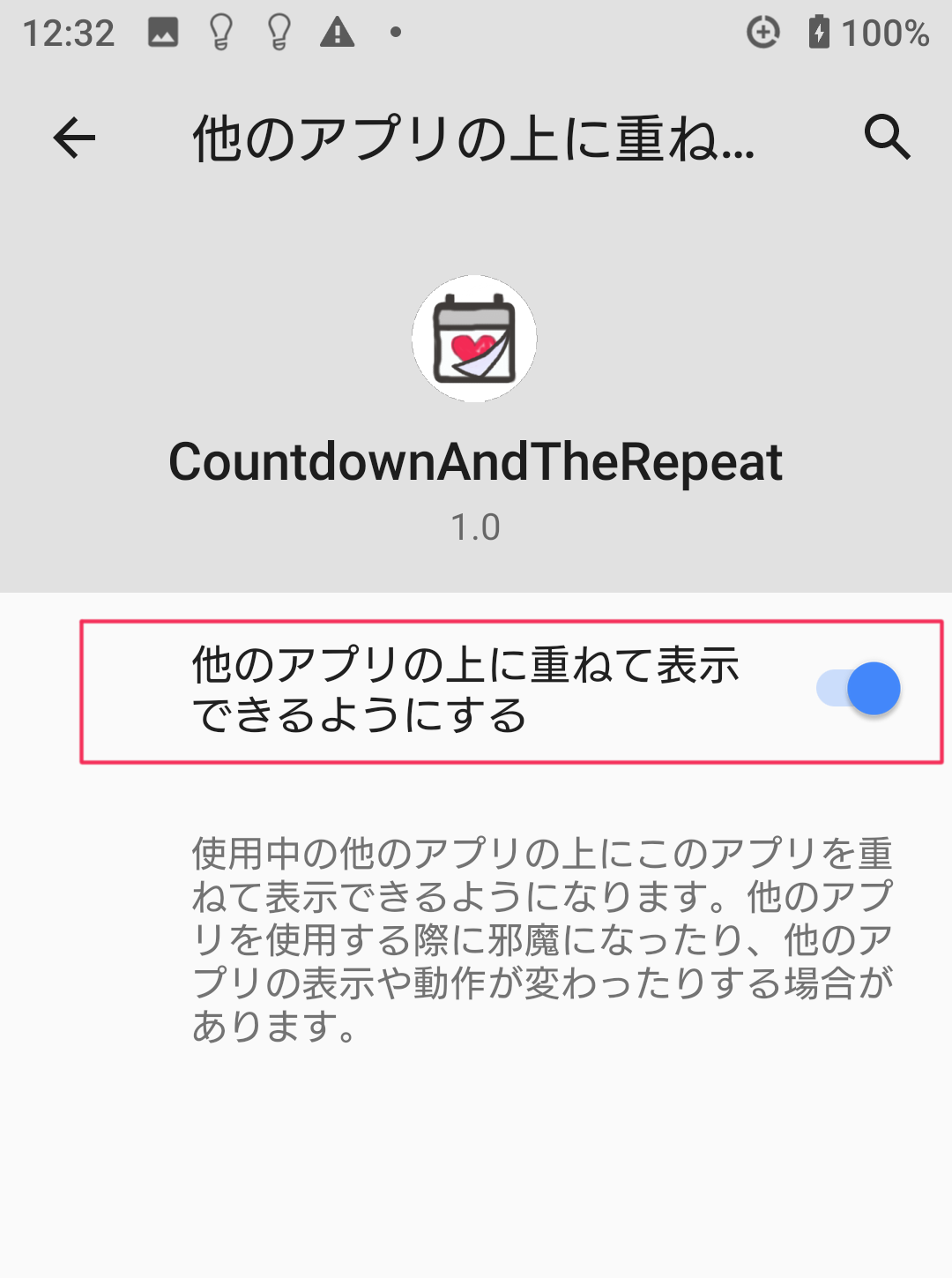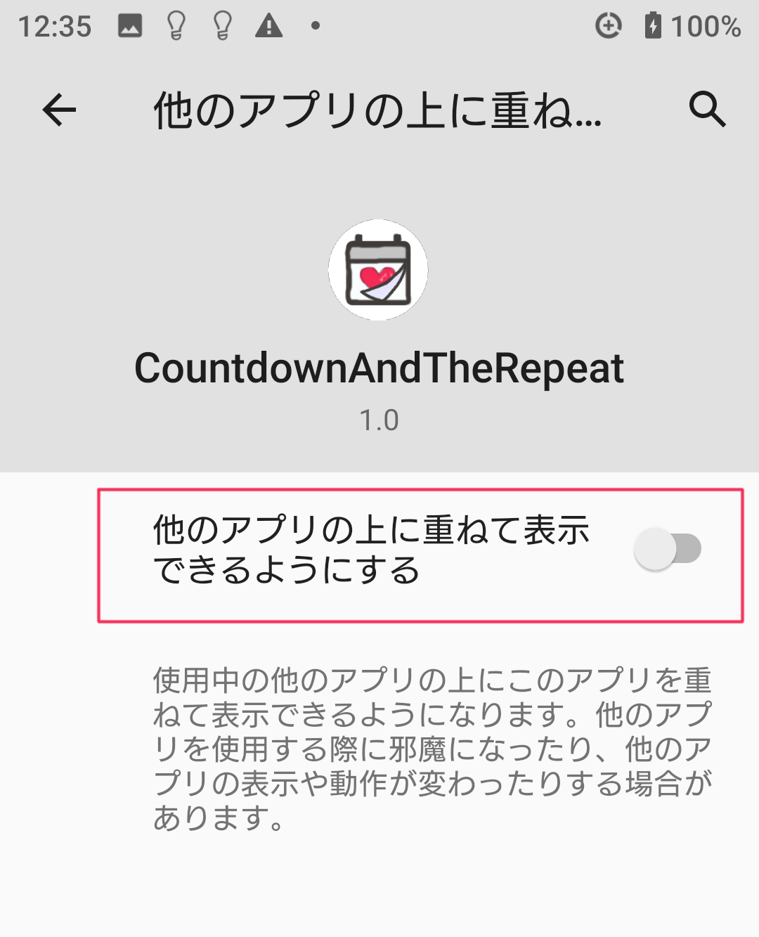 『オーバーレイ』(他のアプリの上に重ねて表示)権限が必要となります。