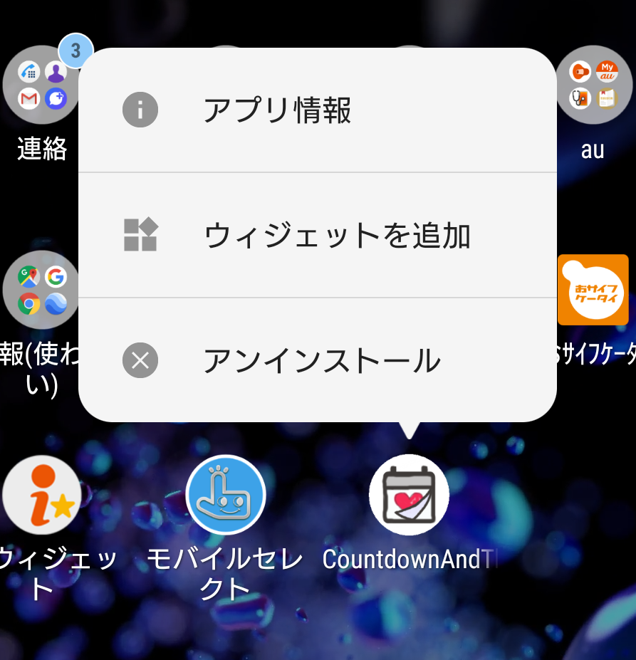 ①アイコンを長押しし、『アプリ情報』をクリック。
