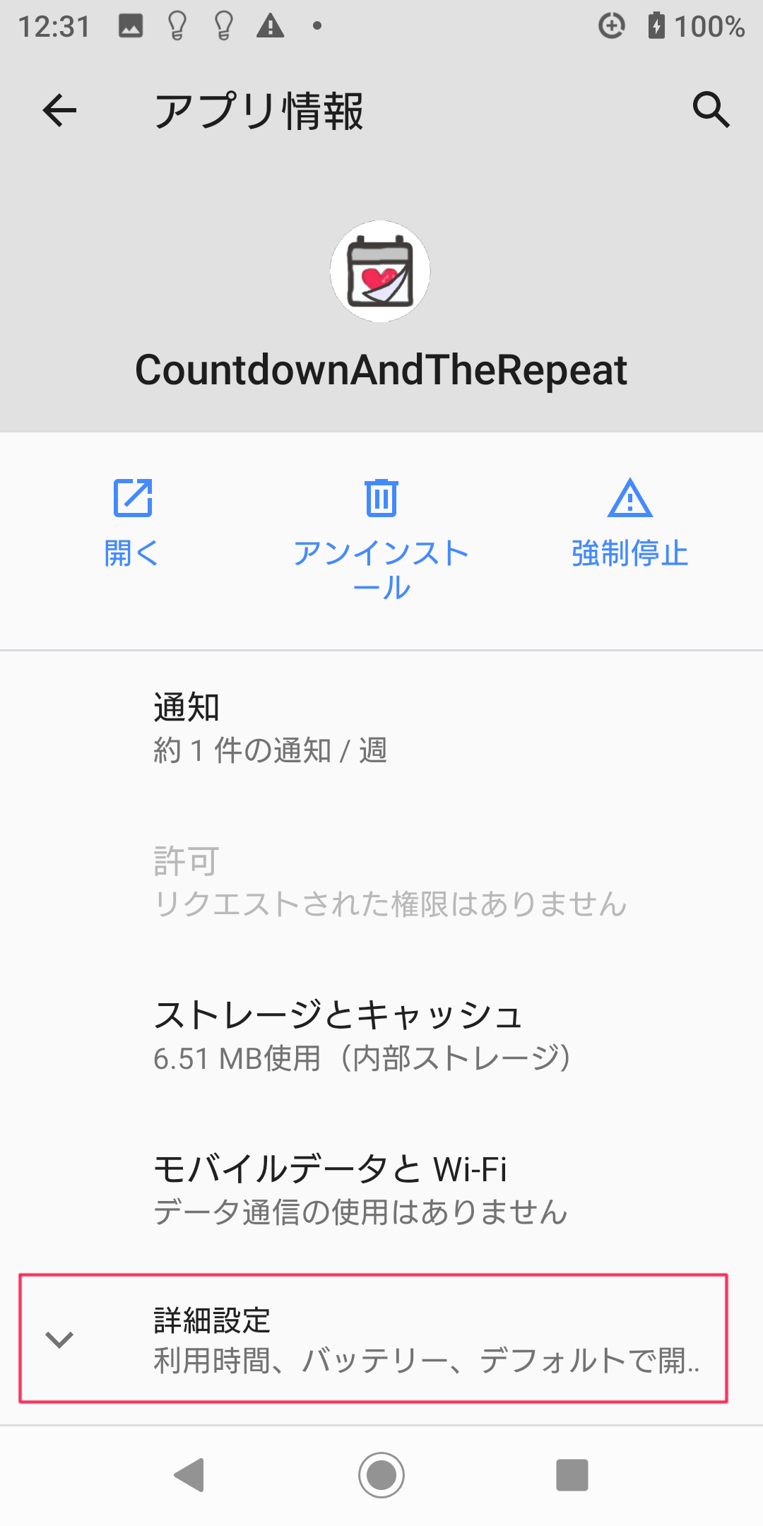 ②『アプリ情報』を開いたら下にスクロールして表示される『詳細設定』をクリック