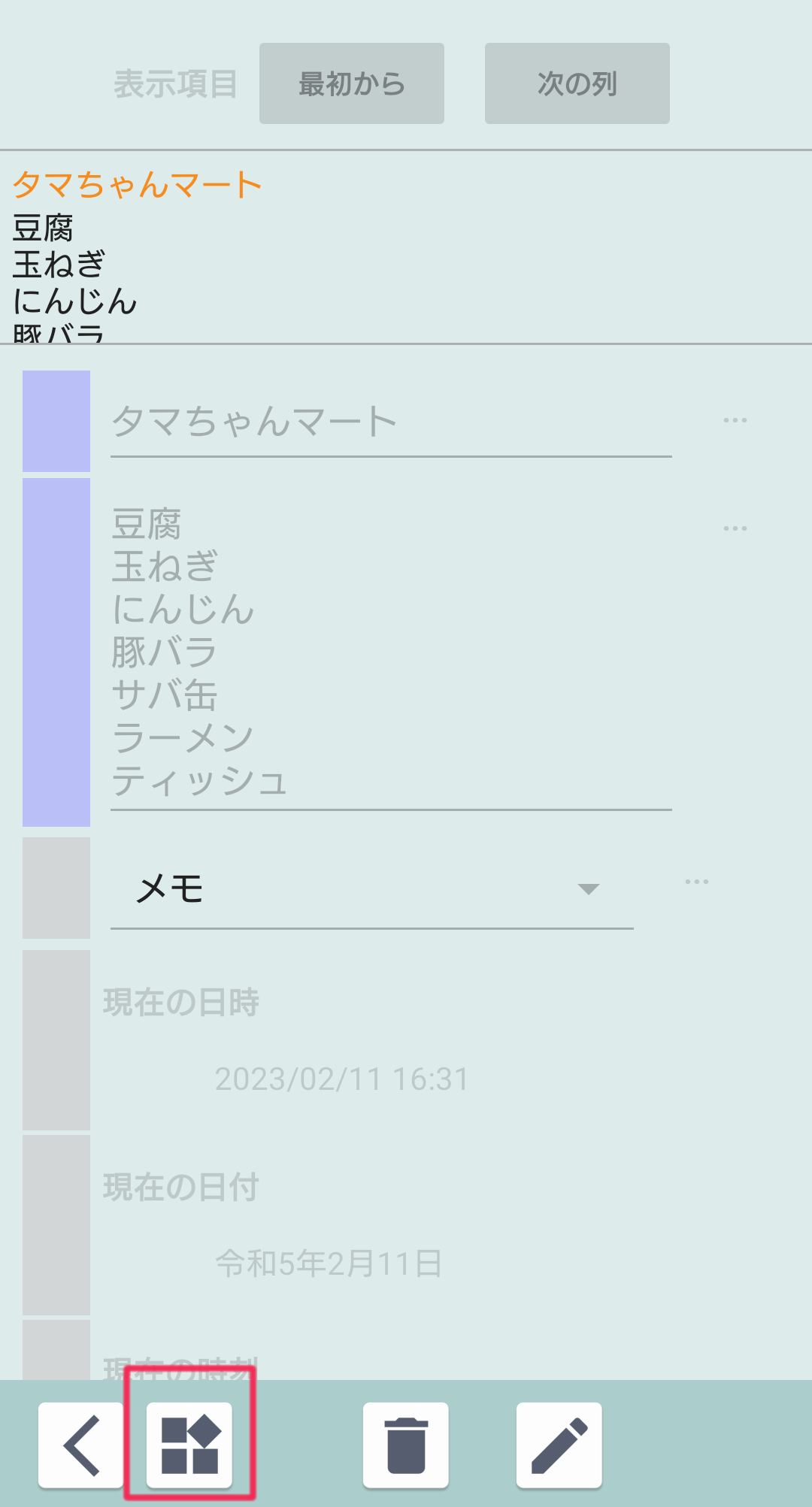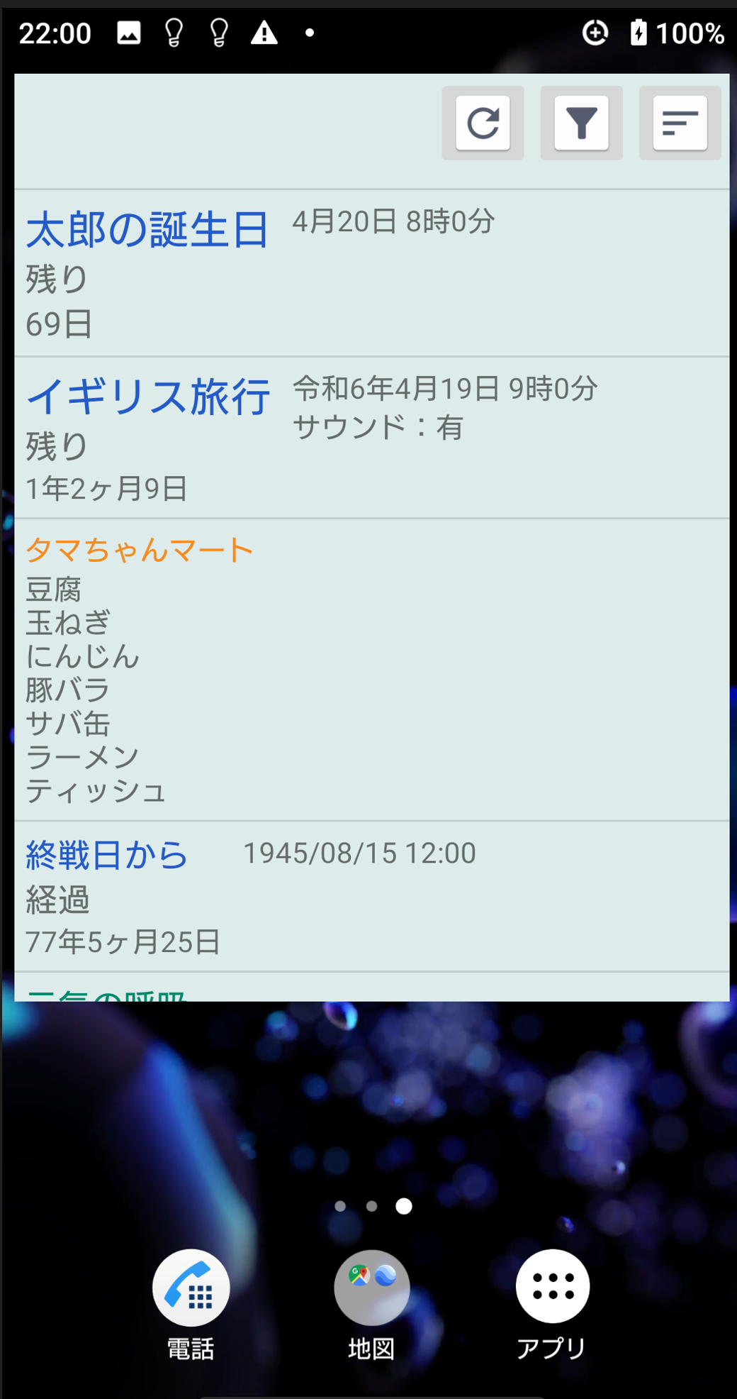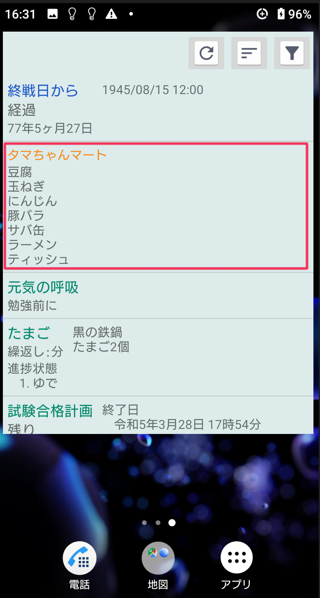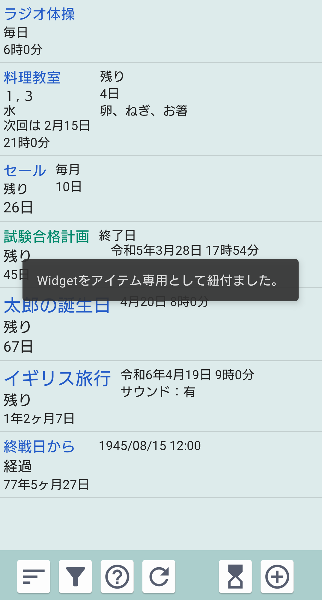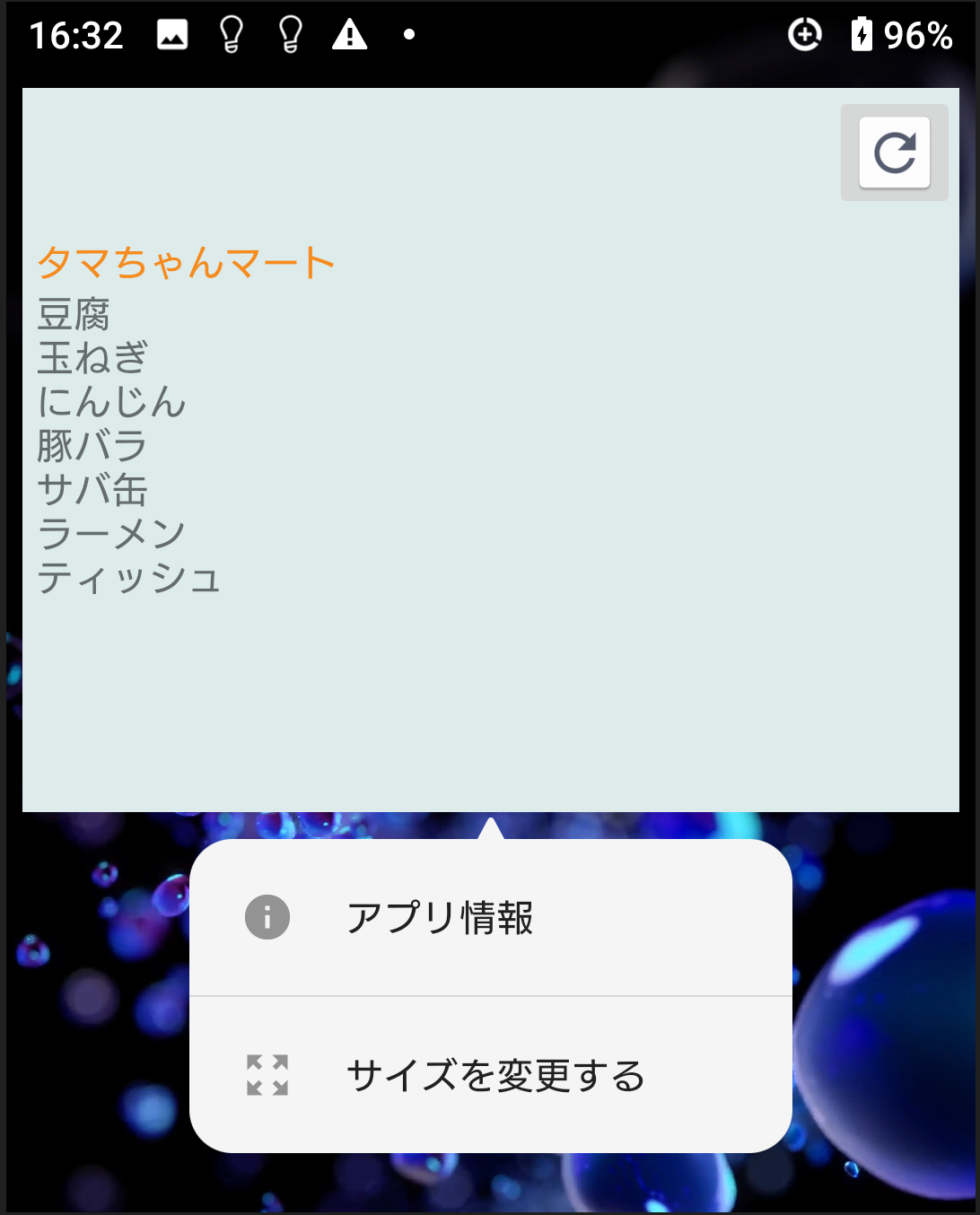 - アンドロイドホーム画面上にウィジェットを追加し、登録アイテムの一覧を参照することができます。