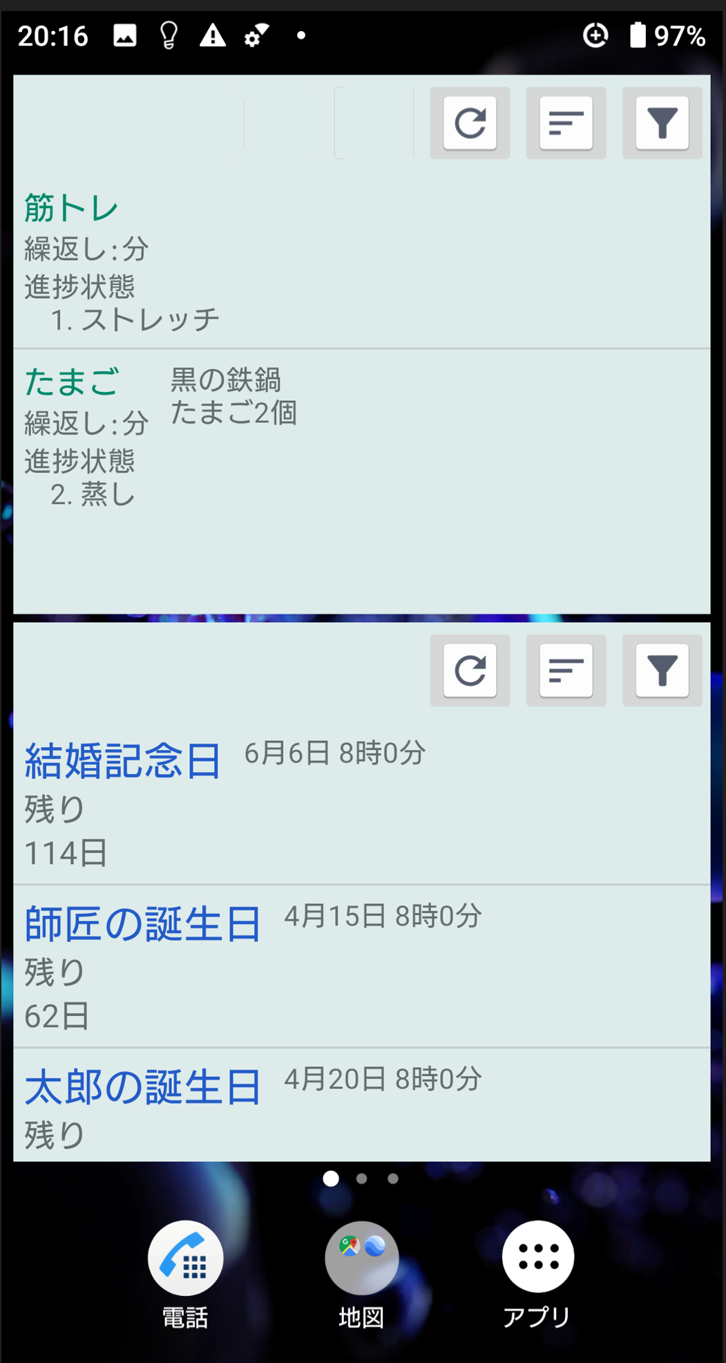 - ウィジェットの自動更新が何らかの理由により停止した場合に、更新処理で最新の情報に更新します。