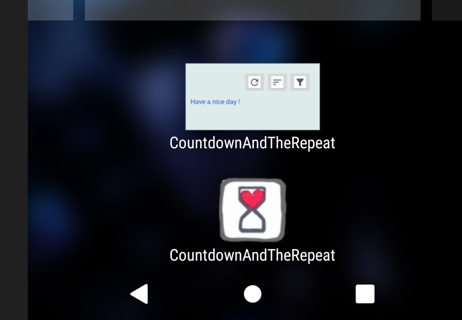 (上部のプレビュー画像。下部のプレビュー画像はタイマー画面ショートカットボタン型ウィジェットです。)